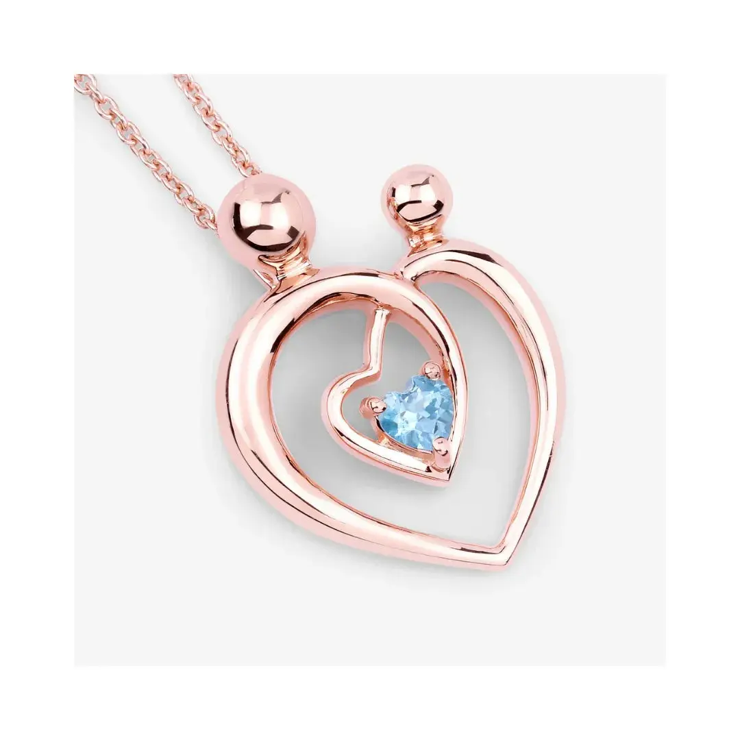 Genuine Swiss Blue Topaz Heart Mom Necklace
