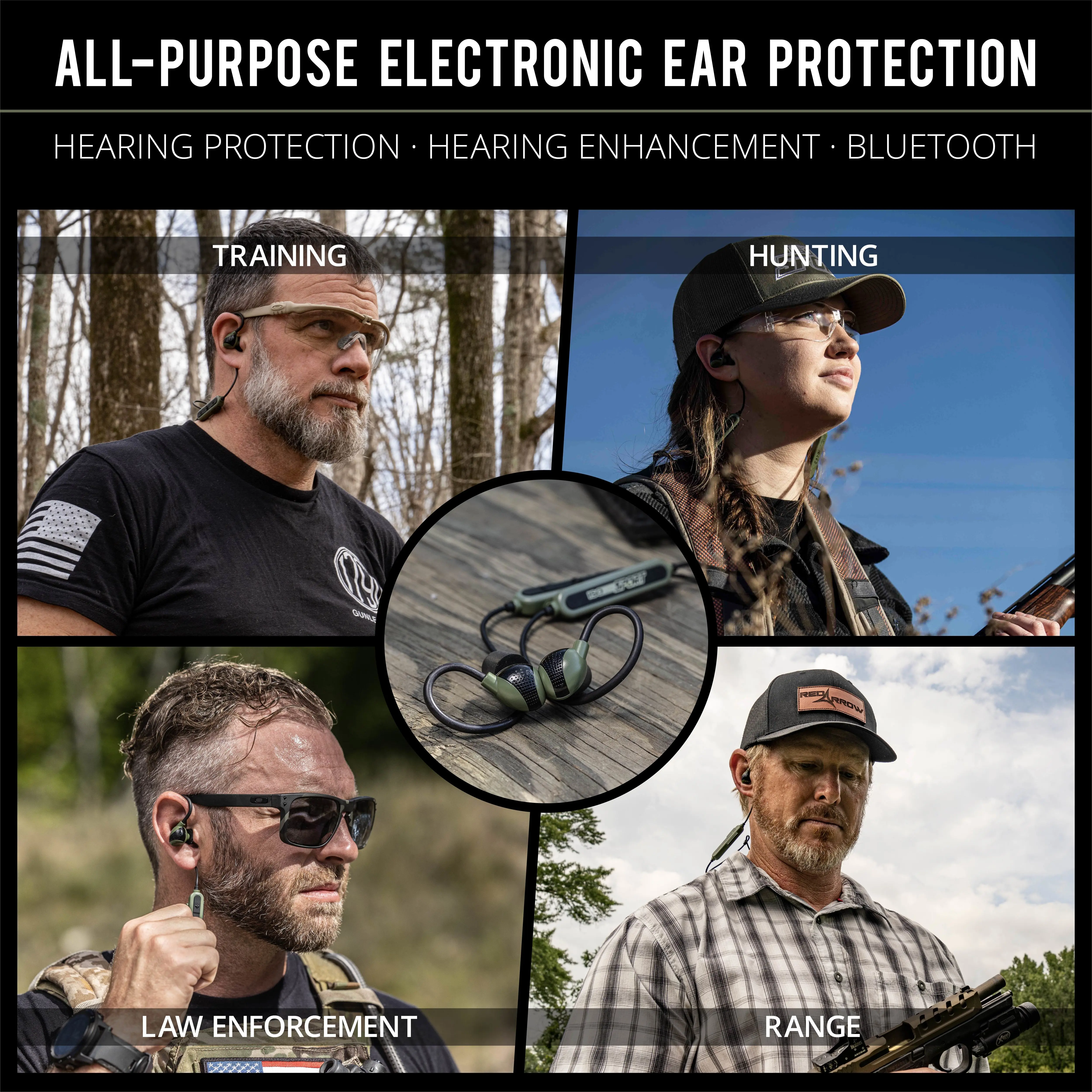 ADVANCE BT Tactical Hearing Protector with Bluetooth 5.1, IP67 Waterproof, 10-20 Hours Battery, SafeMax Technology, Noise Isolating Microphone, Ultra-Durable, Includes Eartips & Travel Case