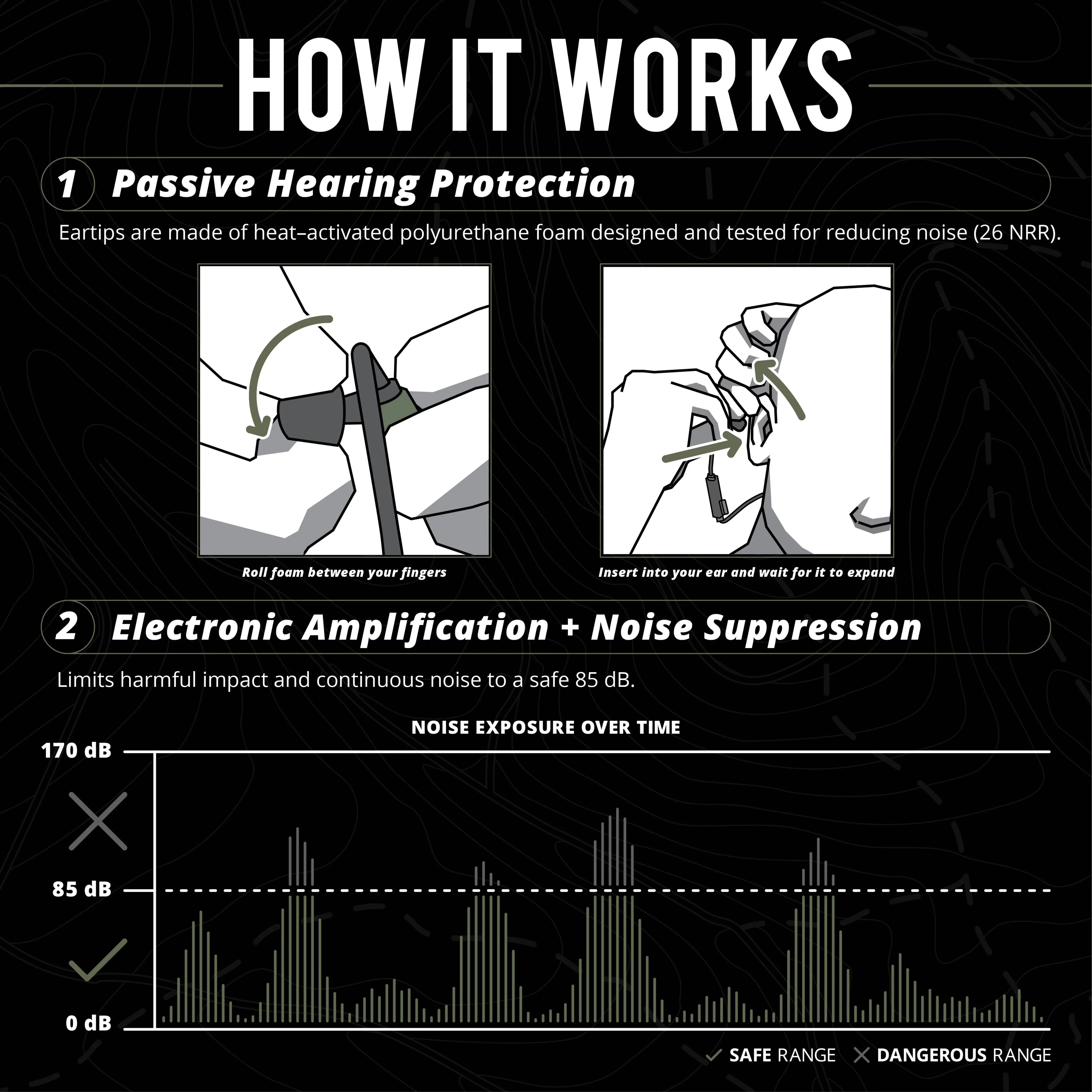 ·Tactical Sound Control™ amplifies environmental sound and limits harmful noise