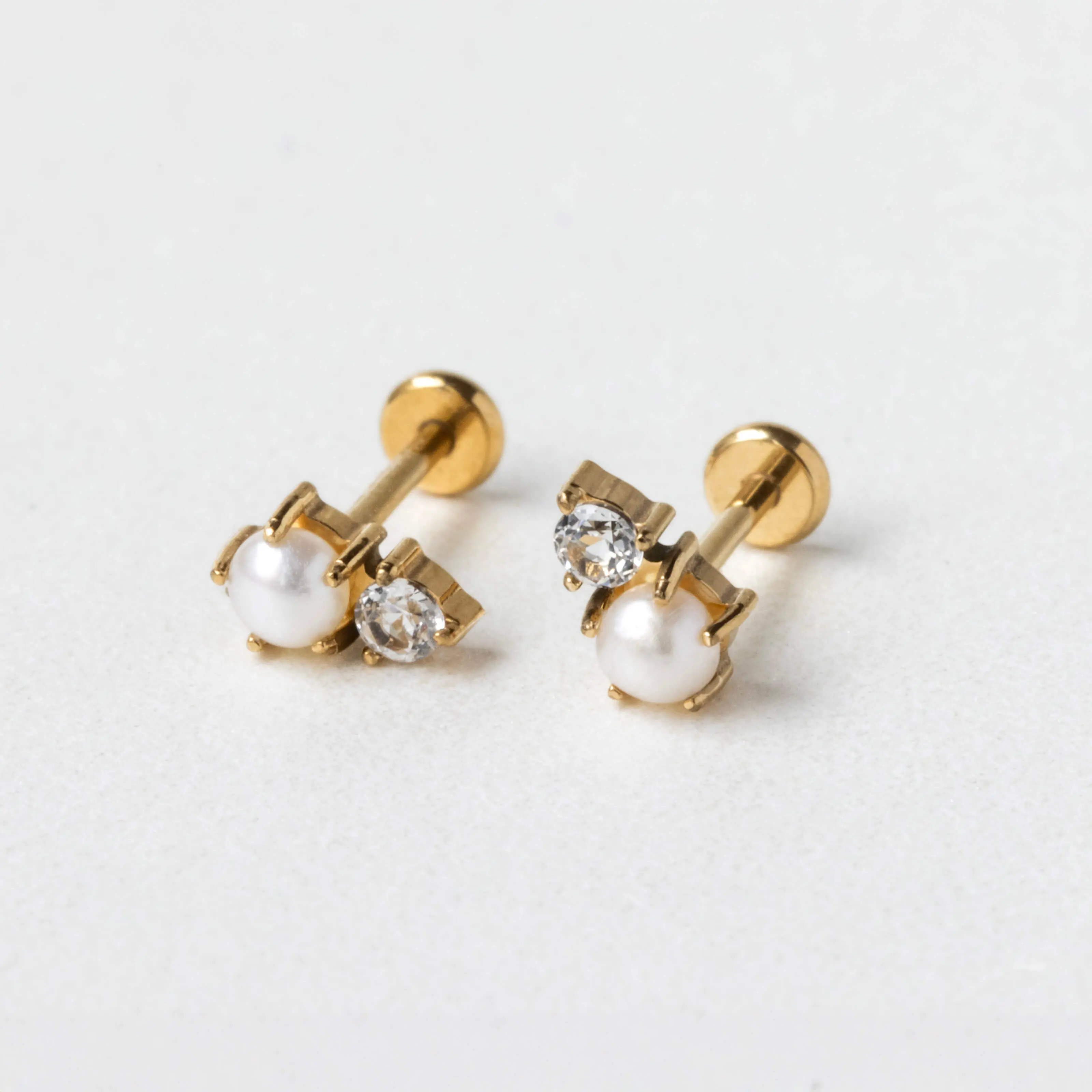 Our Pearl and White Topaz Nap Earrings® feature our signature push pin flat backs made from medical-grade titanium, designed for 24/7 poke-free wear and sensitive skin! Our Nap Earrings always come as a pair, featuring 20g-6mm posts (aka the same thickness as traditional earrings) so they’re perfect for lobe piercings.