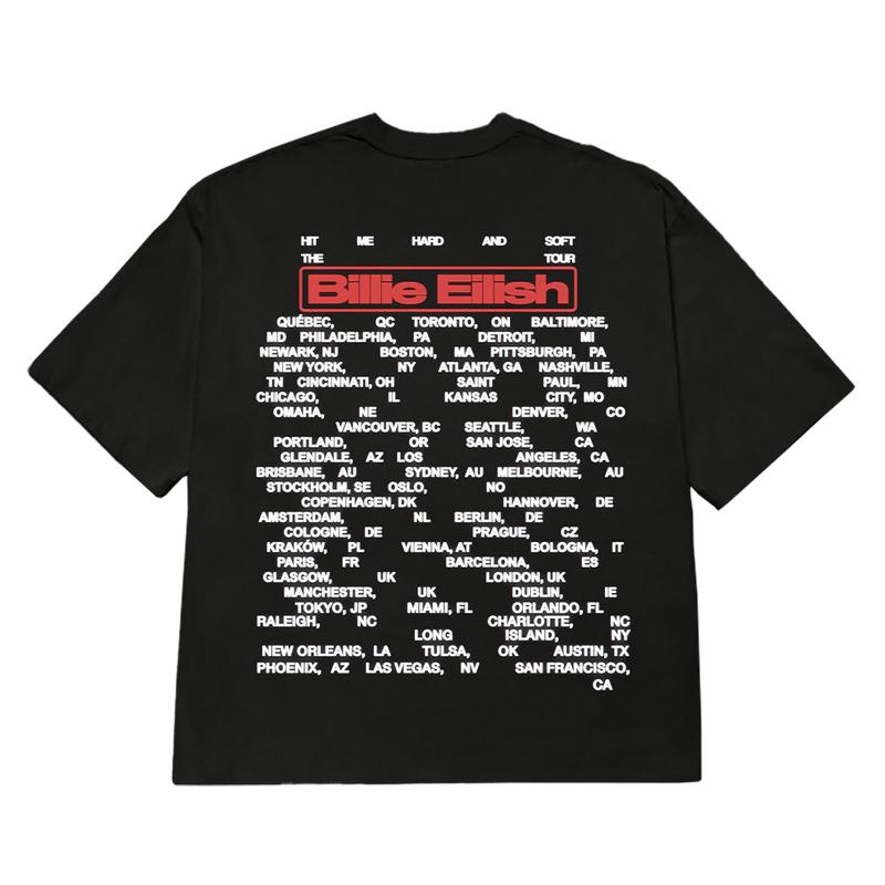 Black T-Shirt Featuring Tour Dates and Graphic from the “HIT ME HARD AND SOFT: THE TOUR.”