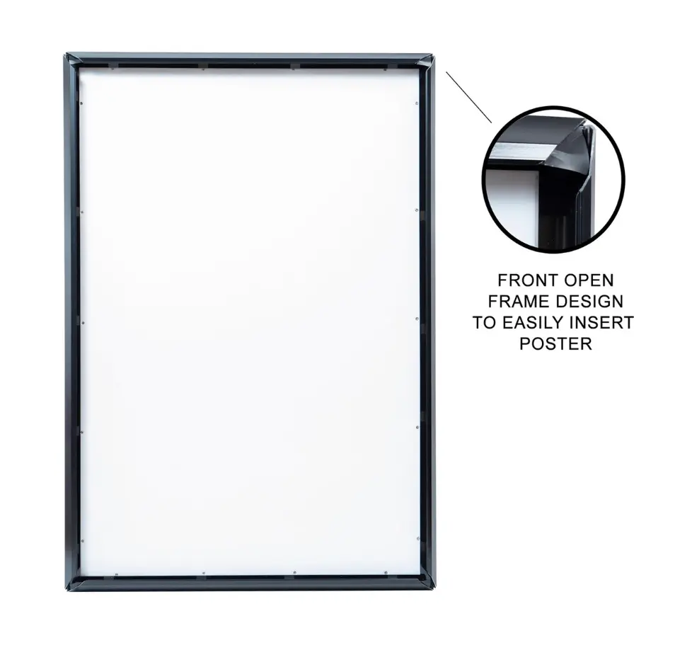 • Effortless Poster Swaps: Snap-frame borders pop open for tool-free poster changes—any size of movie posters, backlit prints, or photo paper.