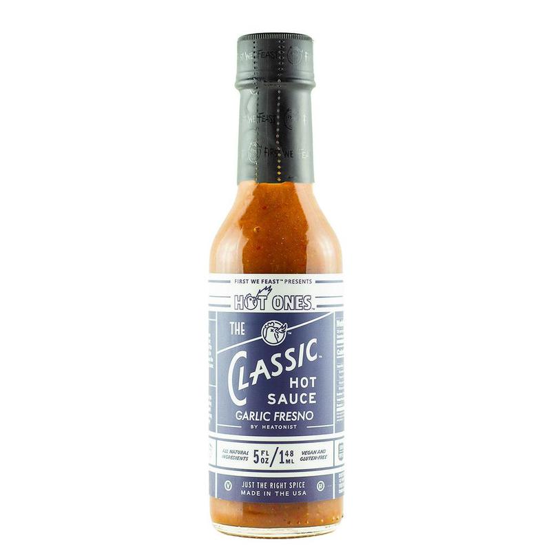 Five fan-favorite Hot Ones hot sauces in one custom Hot Ones gift box! With a range of styles and heat levels, it's the perfect pack to turn up the heat on a holiday party, warmly welcome a housewarming host, and test your crew's collective spice tolerance. No matter the recipient - friend, family member or yourself (you deserve tasty sauce, too) - this flavor-packed collection of best-selling Hot Ones hot sauce is guaranteed to impress.