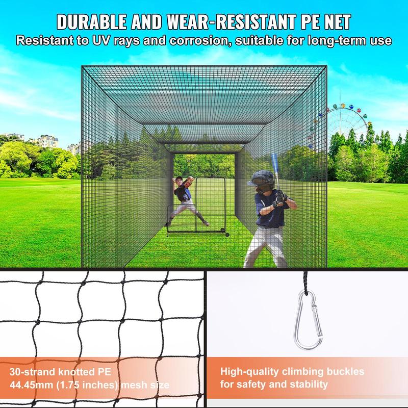 • Humanized Design: Features a newly added cage door, which opens and closes with hooks and loops, facilitating easy entry and exit for athletes to the training field. This design enhances your training experience, and the hitting cage net is suitable for athletes of all ages.