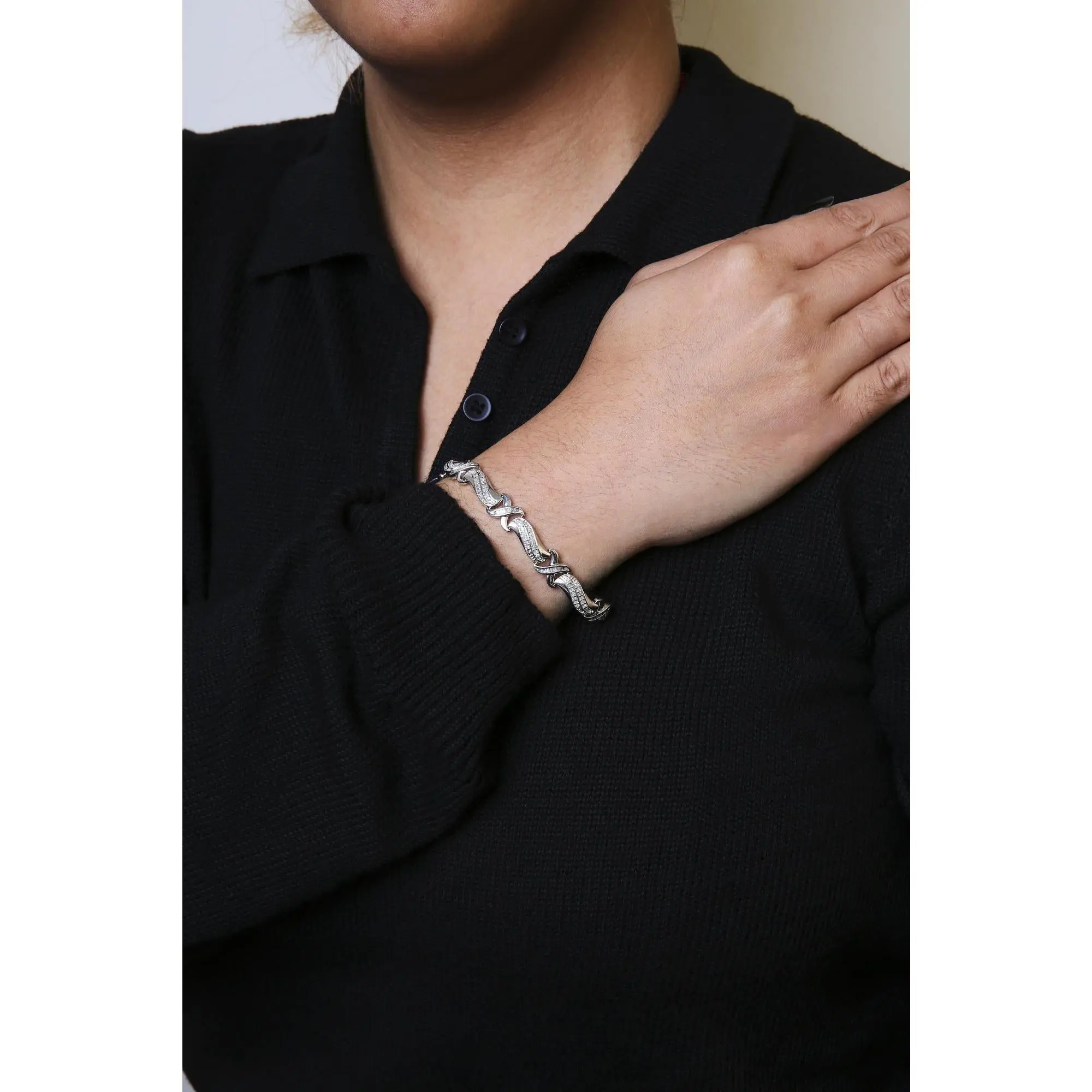 .925 Sterling Silver 1 3/4 Cttw Diamond Wave and X Link Tennis Bracelet (I-J Color, I3 Clarity) - 7"