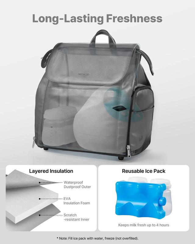 ·Insulated Freshness: The side zippered organizer pockets of the breast feeding bag uses waterproof lining with insulation to slow heat exchange. The included ice pack help keep milk fresh for up to 4 hours, even on busy days