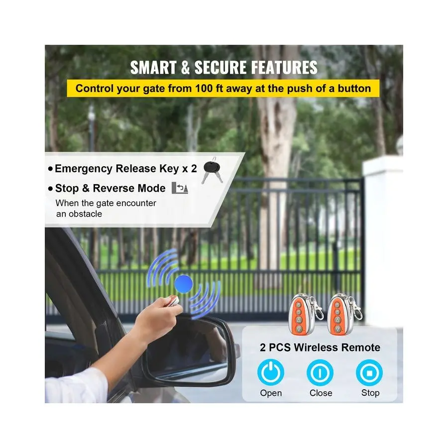 VEVOR Sliding Gate Opener 3300 LBS Automatic Sliding Gate, Gate Opener Motor with 2 Remote Controls, 230 ft Remote Distance Driveway Rolling Gate, Automatic Sliding Gate Opener for Sliding GateVEVOR Sliding Gate Opener 3300 LBS Automatic Sliding Gate, Gate Opener Motor with 2 Remote Controls, 230 ft Remote Distance Driveway Rolling Gate, Automatic Sliding Gate Opener for Sliding Gate Durable Gate Opener Two Control Modes Powerful Motor Keep Quiet To Work Safety