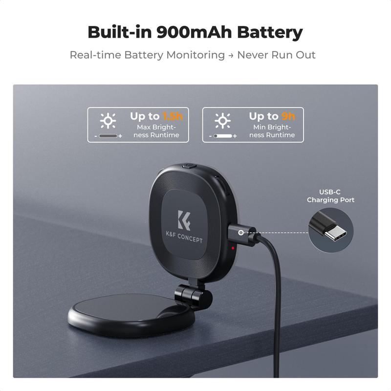 Long-Lasting 900mAh Battery & Type-C Charging-The rechargeable 900mAh battery provides up to 9 hours of continuous runtime.Features quick Type-C charging and a clear LED power indicator, ensuring your magnetic selfie light is always ready for extended photography sessions, live streaming, and video conferences.