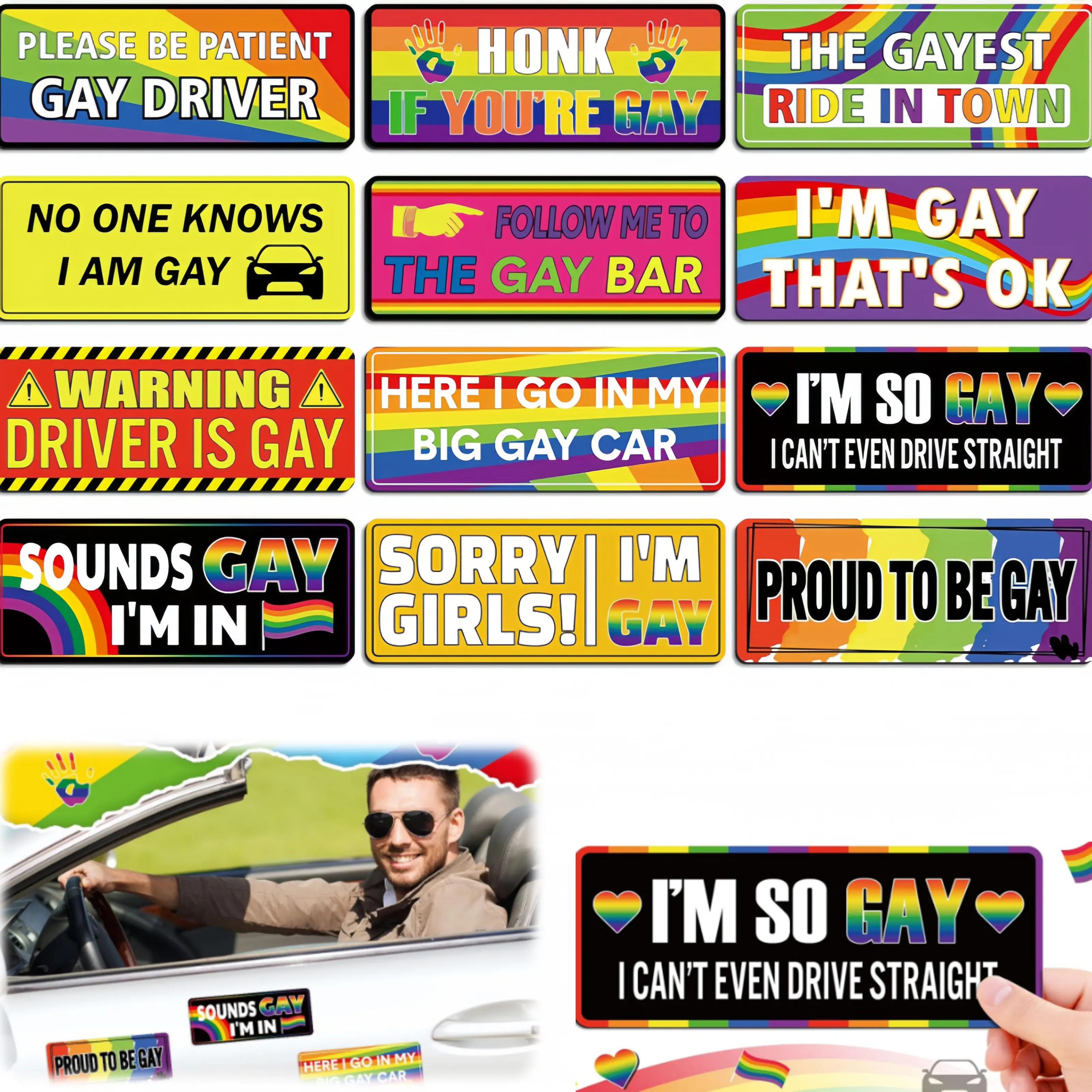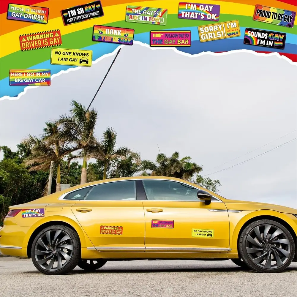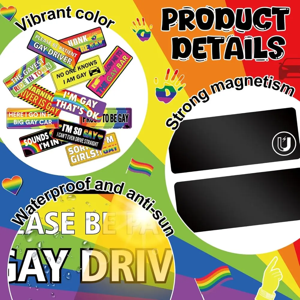 12 Pcs Gay Pride Funny Magnet Bumper Sticker LGBT Rainbow Pride Prank Magnetic Sign for Vehicle Truck Reusable Magnet Sticker for Fridge(Classic)