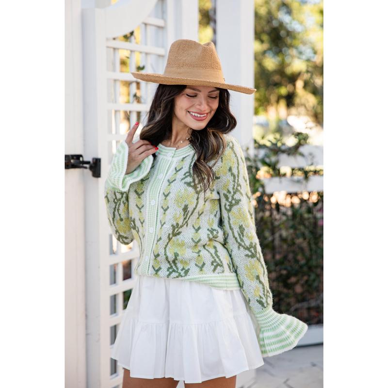 The Petal Parade Floral Knit Cardigan feels straight out of a Parisian café. This floral jacquard cardigan features playful pink blooms, striped cuffs, and a softly structured fit that’s both cozy and charming. The button-up front makes it easy to layer over tees, blouses, or dresses, while the soft knit fabric keeps you warm and stylish. Style it buttoned up with denim or layered over a simple tank for an elevated everyday look.
