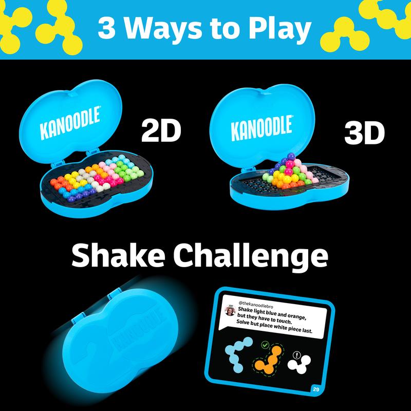 Includes: Limited-edition cyan case, 20 fan-inspired #ShakeChallenge cards (double-sided), 220 exclusive challenging puzzles, and two bonus Kanoodle pieces (plus 12 original pieces)