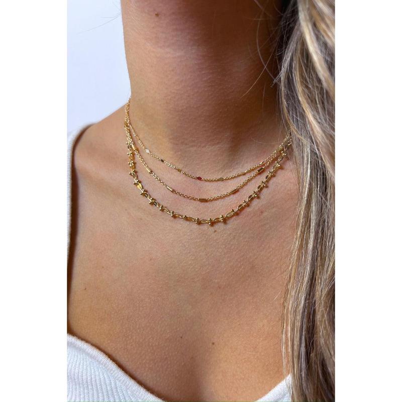 The Heart Like Mine Necklace features triple gold chain link with mini gold hammered medallions.
