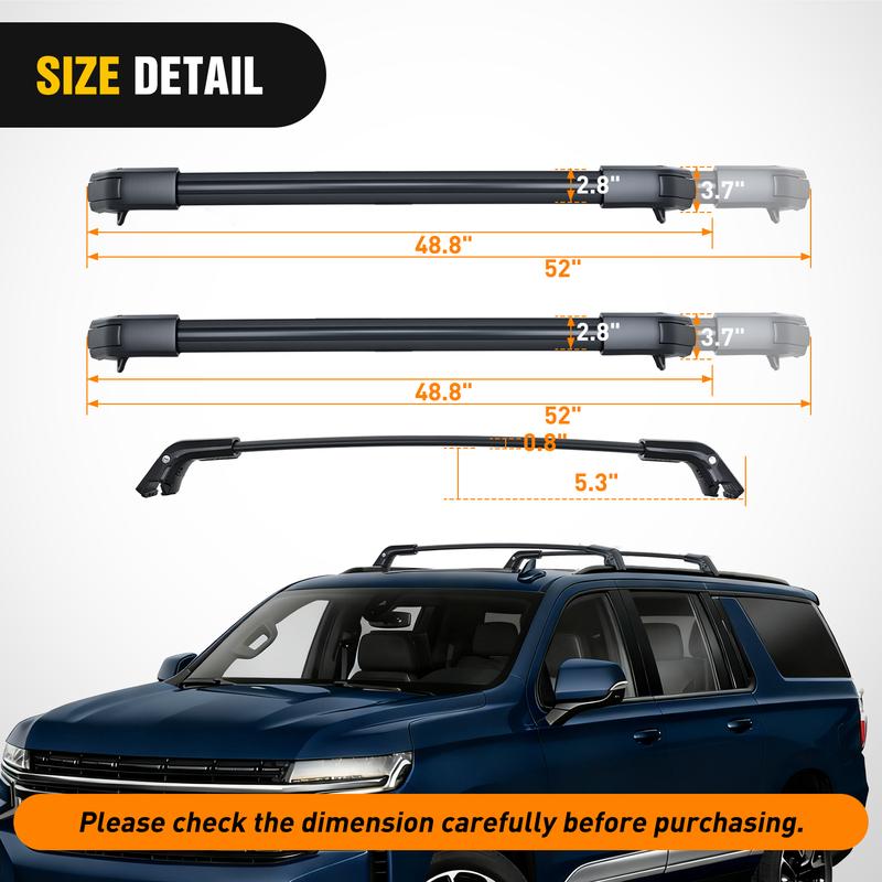 ·CONFIRM BEFORE PURCHASING:Nilight roof rack cross bars are compatible with 2021-2024 Chevrolet Tahoe and Suburban, 2021-2024 GMC Yukon and Yukon XL, 2021-2024 Cadillac Escalade and Escalade ESV (Fit for factory raised side rails). Please check your car model and roof rails type before buying