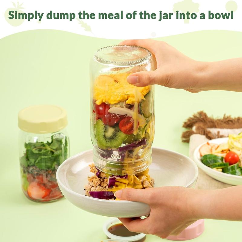 ·Two Serving Scenes to Choose from - You can take the salad jar with lid out of the fridge and pour it into a salad bowl, top with dressing and crunchy beans, stir, and enjoy a bowl of fresh, crisp salad at home; Or take it with you on the go and use it as a salad container for your outdoor picnics or work lunches!