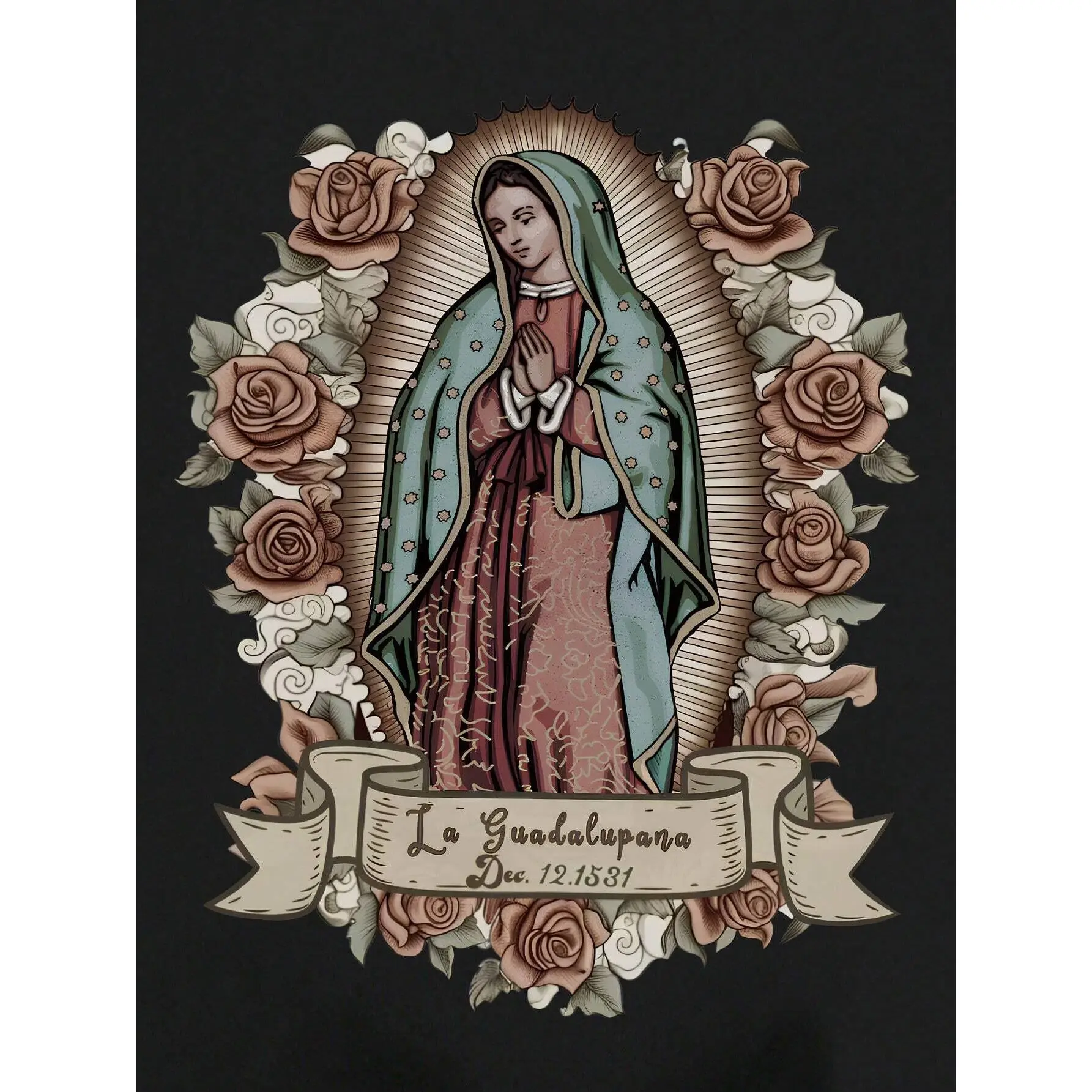 Virgin Mary Floral Print Fleece Sweatshirt,Long Sleeve Tops Graduation,Back To School Outfits,Graduation,Teacher Outfits For Women,Back To School Pullover Fall Outfit