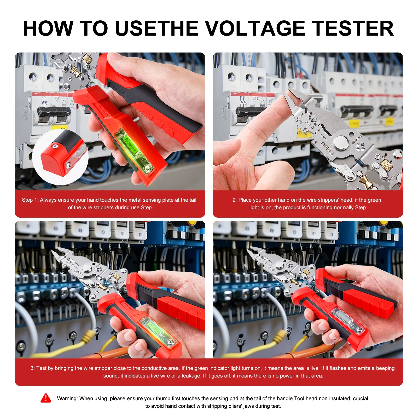·Upgraded Chip - More Sensitive: Unlike standard wire strippers electrical, this upgraded version is equipped with four LED indicators and an audible alarm.The enhanced chip accurately distinguishes live (hot) and neutral wires, adding an extra layer of safety during quick electrical inspections.