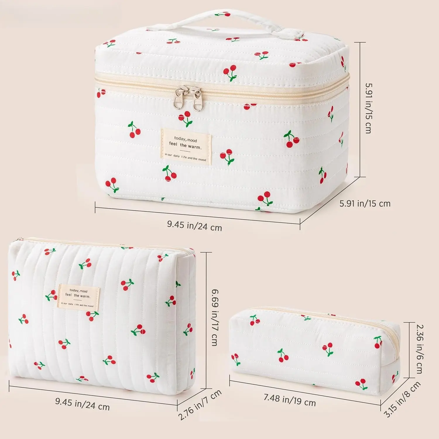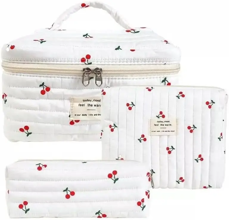 Padded Cotton Cosmetic Bag Set