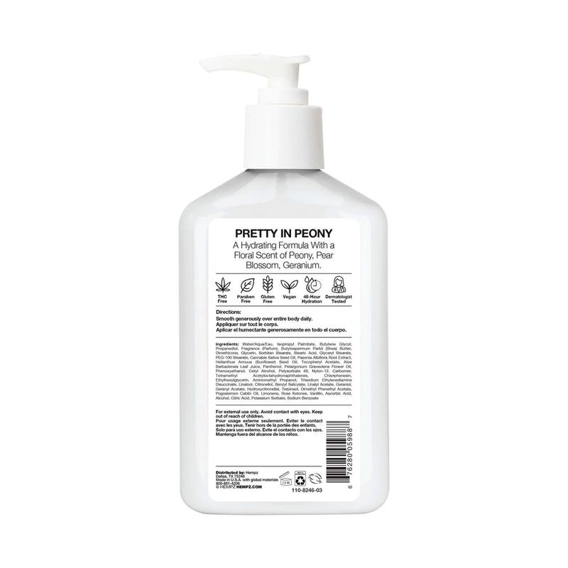 | Ingredients | Water/Aqua/Eau, Isopropyl Palmitate, Butylene Glycol, Propanediol, Fragrance (Parfum), Butyrospermum Parkii (Shea) Butter, Dimethicone, Glycerin, Sorbitan Stearate, Stearic Acid, Glyceryl Stearate, PEG-100 Stearate, Cannabis Sativa Seed Oil, Paeonia Albiflora Root Extract, Helianthus Annuus (Sunflower) Seed Oil, Tocopheryl Acetate, Aloe Barbadensis Leaf Juice, Panthenol, Pelargonium Graveolens Flower Oil, Phenoxyethanol, Cetyl Alcohol, Polysorbate 40, Nylon-12, Carbomer, Tetramethyl Acetyloctahydronaphthalenes, Chlorphenesin, Ethylhexylglycerin, Aminomethyl Propanol, Trisodium Ethylenediamine Disuccinate, Linalool, Citronellol, Benzyl Salicylate, Linalyl Acetate, Geraniol, Geranyl Acetate, Hydroxycitronellal, Terpineol, Dimethyl Phenethyl Acetate, Pogostemon Cablin Oil, Limonene, Rose Ketones, Vanillin, Ascorbic Acid, Alcohol, Citric Acid, Potassium Sorbate, Sodium Benzoate |