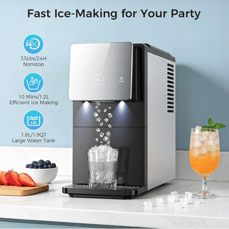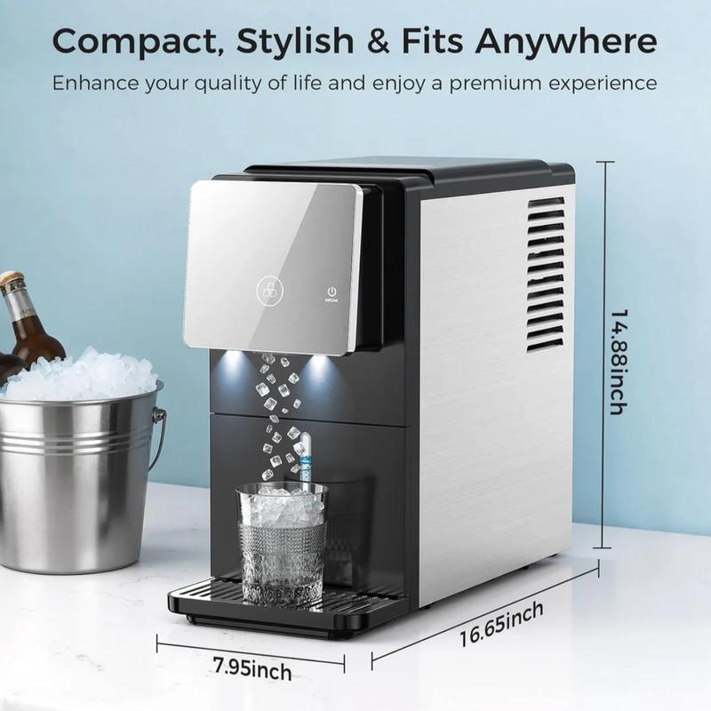 Enjoy soft, chewable nugget ice with zero scooping and zero mess. Designed for convenience and hygiene, this countertop ice maker delivers touch-free ice, fast production, and easy maintenance—perfect for homes, offices, and entertaining spaces.