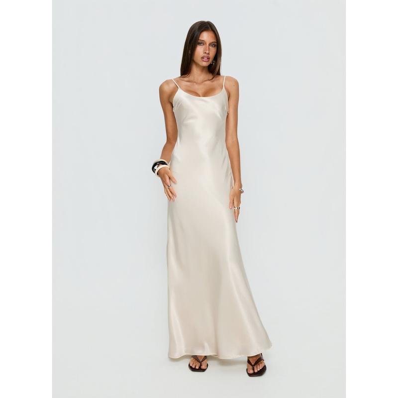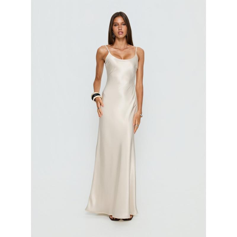 Miracles Scoop Satin Maxi Dress Champagne