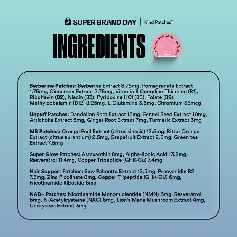 Unpuff Patches: Bloat support you can feel — from the outside in. It is a daily wellness patch designed to relieve bloating and puffiness using 5 plant-based ingredients.