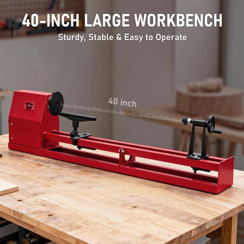 · Professional 40-Inch Benchtop Wood Lathe – Designed for serious woodworkers, this benchtop wood lathe features a 40" between-centers capacity and a sturdy steel headstock, providing stability and precision for turning bowls, spindles, and furniture legs.