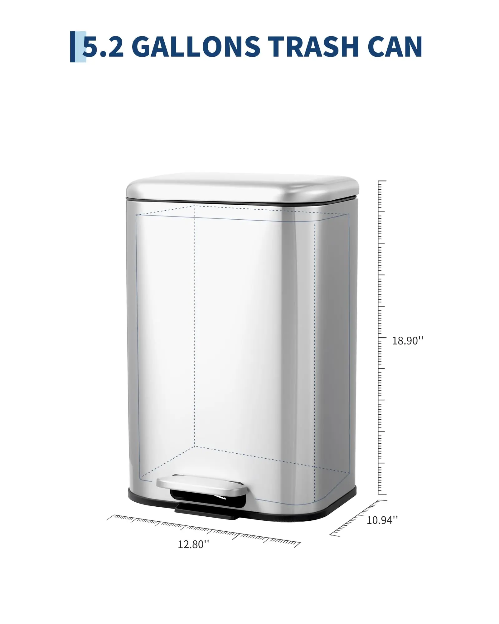 · Generous 5.2-Gallon Capacity: With a roomy 5.2-gallon/20-liter capacity, this rectangular waste container fits plenty of kitchen or household waste—making it ideal as a kitchen trashcan, bathroom trash can, or recycling bin in busy homes and offices