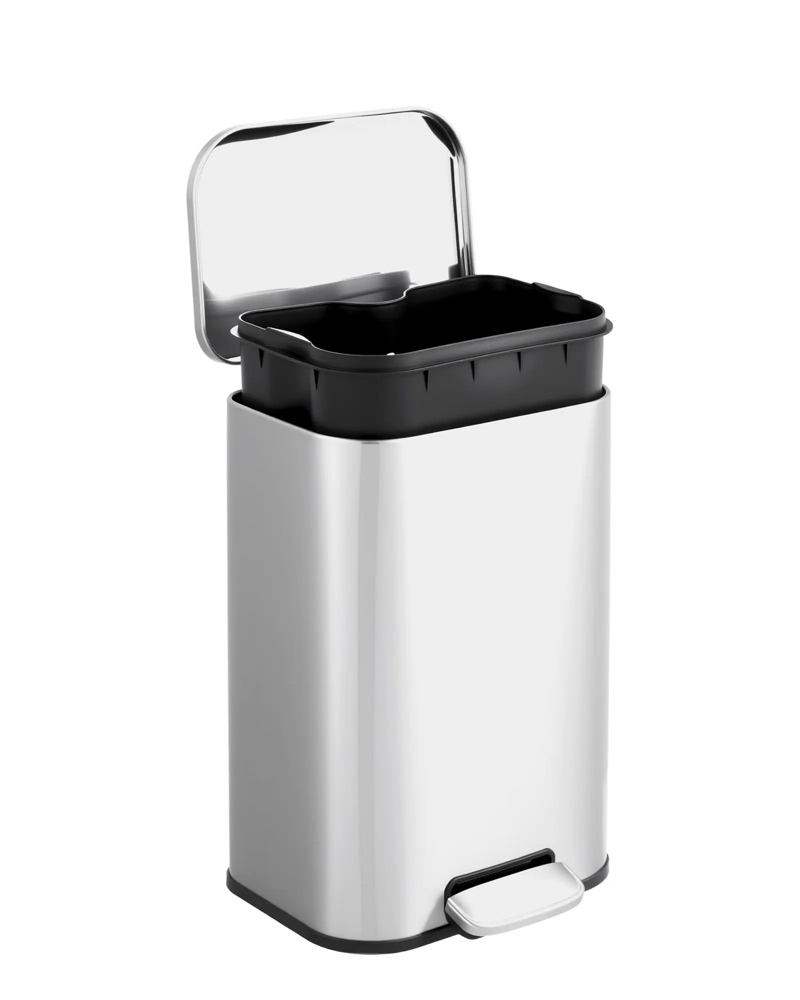 · Elegant & Durable Stainless Steel: Built from high-grade stainless steel, this kitchen trash can is rust-resistant, fingerprint-resistant, and easy to clean—keeping your space stylish and spotless with minimal effort. Perfect as a trash bin for living rooms, kitchens, or offices