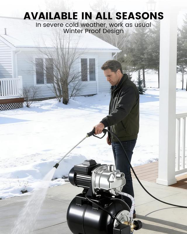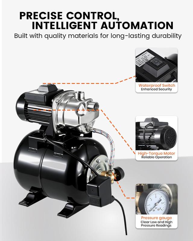 · Automatic Pressure Switch for Hassle-Free Use: The automatic pressure switch and real-time precision gauge mean you never have to adjust settings manually. Your jet pump turns on or off automatically for worry-free operation, ensuring water is always available when you need it