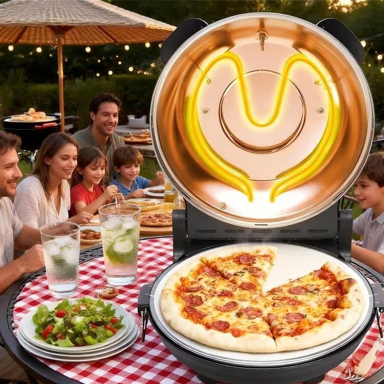 EASY TO CLEAN - The pizza cooker comes with a non-stick coating, making it easy to clean. Its space-saving design fits perfectly on any countertop, while the included pizza stone ensures perfect crusts every time. Enjoy hassle-free baking with ease.