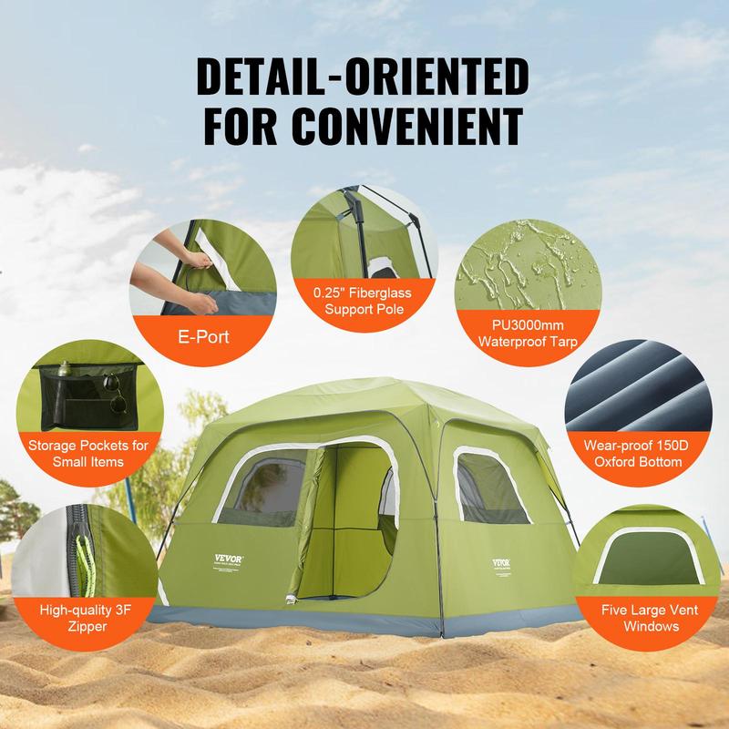 ·Unbeatable Camping Experience: This lightweight tent has cast iron and fiberglass support poles, smooth 3F zippers, and convenient inside storage pockets for small items. There's also an E-Port at the bottom for easy access to power. It's perfect for casual camping, backyard lounging, festivals, beach gatherings, and other outdoor events.
