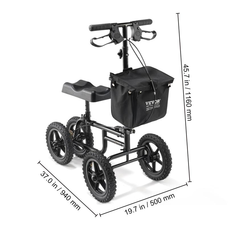• Safety On Every Ride: Equipped with easy-grip handlebars and a dual rear braking system, VEVOR heavy-duty carbon steel knee scooter prioritizes safety and control. Simply activate the hand brakes at the handlebars for quick stopping and effortless control of the roller, ensuring a safe and comfortable journey.