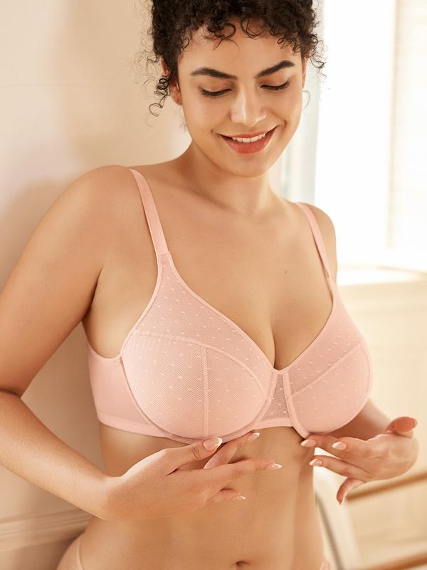 Women's Polka Dot Lace Underwire Full Cup Bra, Comfortable Breathable Mesh Cups, Medium Support, Fitted Design, All Seasons