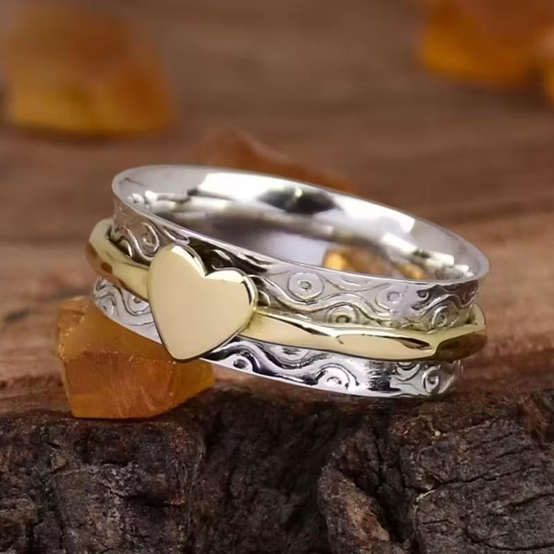 5. Rotating Anxiety Relief Ring, Unisex Two-Tone Heart-Shaped Ring, K-plated Vintage Fidget Spinner, Suitable for Valentine's Day Gifts and Everyday Parties.