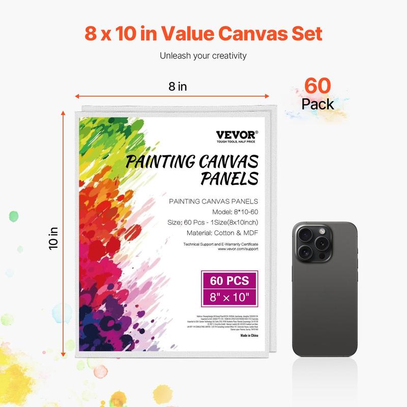5. VEVOR Canvas Boards for Painting, , 8 x 10 Inch White Canvases for Painting, 60 Pack Painting Canvas Panels for Sketching, Acrylic and Oil Painting, Watercolor, Paint Canvas for Kids and Professionals