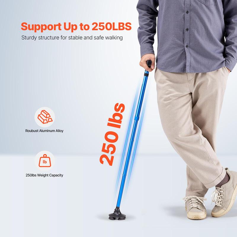 5. VEVOR Walking Cane for Man Woman, , Folding Walking Stick with 8-Level Adjustable Height and 4-Pronged Pivoting Base, Lightweight & Portable Aluminum Mobility Aid for Senior Adult, 250LBS Loading (Blue)