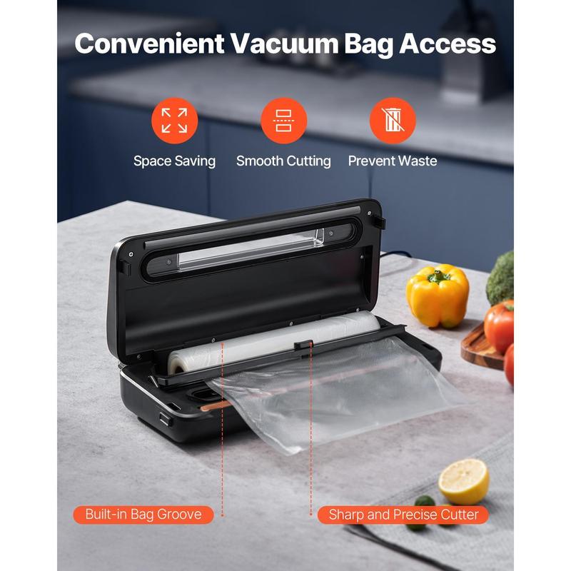 • 80kPa Powerful Suction: The vacuum sealer is made from high-quality stainless steel and ABS materials, ensuring reliable and durable performance. It is equipped with a premium vacuum pump that delivers an ultra-strong suction power of up to 80kPa. The 120W high-power motor supports continuous vacuum sealing, making it perfect for handling large food preservation tasks at home. It is an indispensable and efficient assistant for your home kitchen