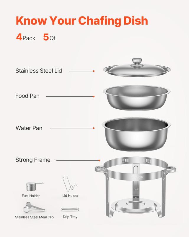 • Ample 5QT Capacity: With a large capacity, this buffet chafer can hold multiple servings of your favorite dishes. The included multifunctional meal clip makes it easy to serve pasta, steak, soup, chicken, and more