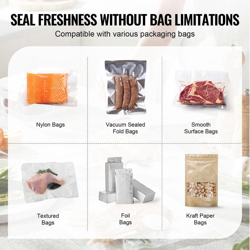 • Easy to Use: Seal bags up to 15.7 in/400 mm with ease! Our commercial vacuum sealer provides a broader sealing range, allowing you to easily handle bags of different sizes. With an advanced pressure bar design, the operation becomes more convenient, ensuring reliable sealing every time. 2 sealing bars handle multiple tasks simultaneously. Whether it's small or large bags, it seals perfectly, maintaining the freshness and taste of your ingredients.
