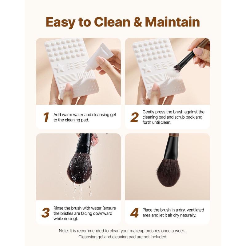 • Durable Wooden Handle: Crafted from high-quality wood and hand-cut for precise application, the ergonomic and stylish handle provides a comfortable, non-slip grip. It offers better control, smooth application, and reduces hand fatigue during long makeup sessions