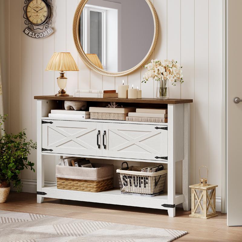 ·Flexible Use, Convenient Adaptability: With a farmhouse look and excellent storage abilities, this cabinet can be an entryway table, sofa table, and console table or act as a buffet or TV stand, providing convenience across various home scenarios