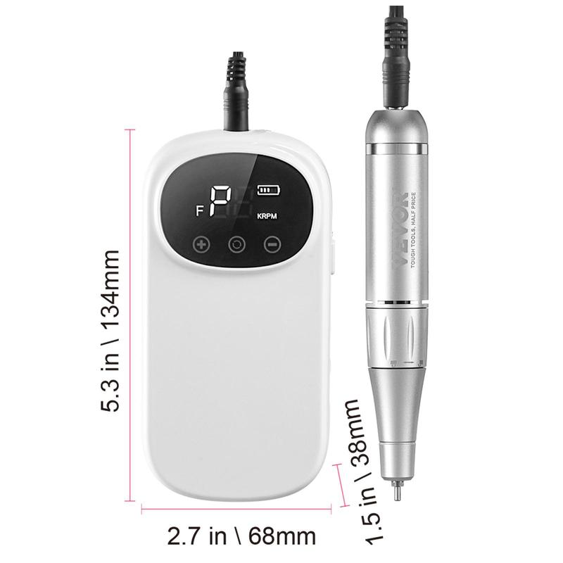 • High Speed Up To 35,000RPM & Variable Speed Control: VEVOR electric cordless nail drill features a high-efficiency motor, reaching high speed of up to 35,000RPM, ensuring smooth nail polishing with minimal vibration and noise. Whether you're polishing, shaping, or buffing nails, our variable-speed nail e-file machine meets your needs.
