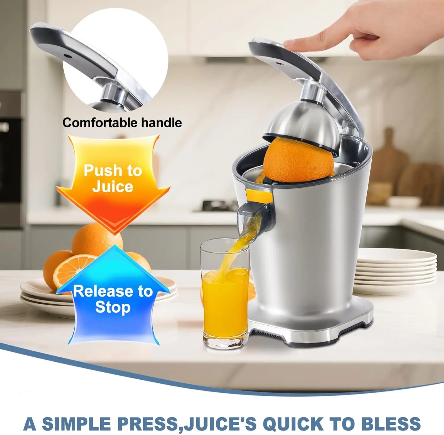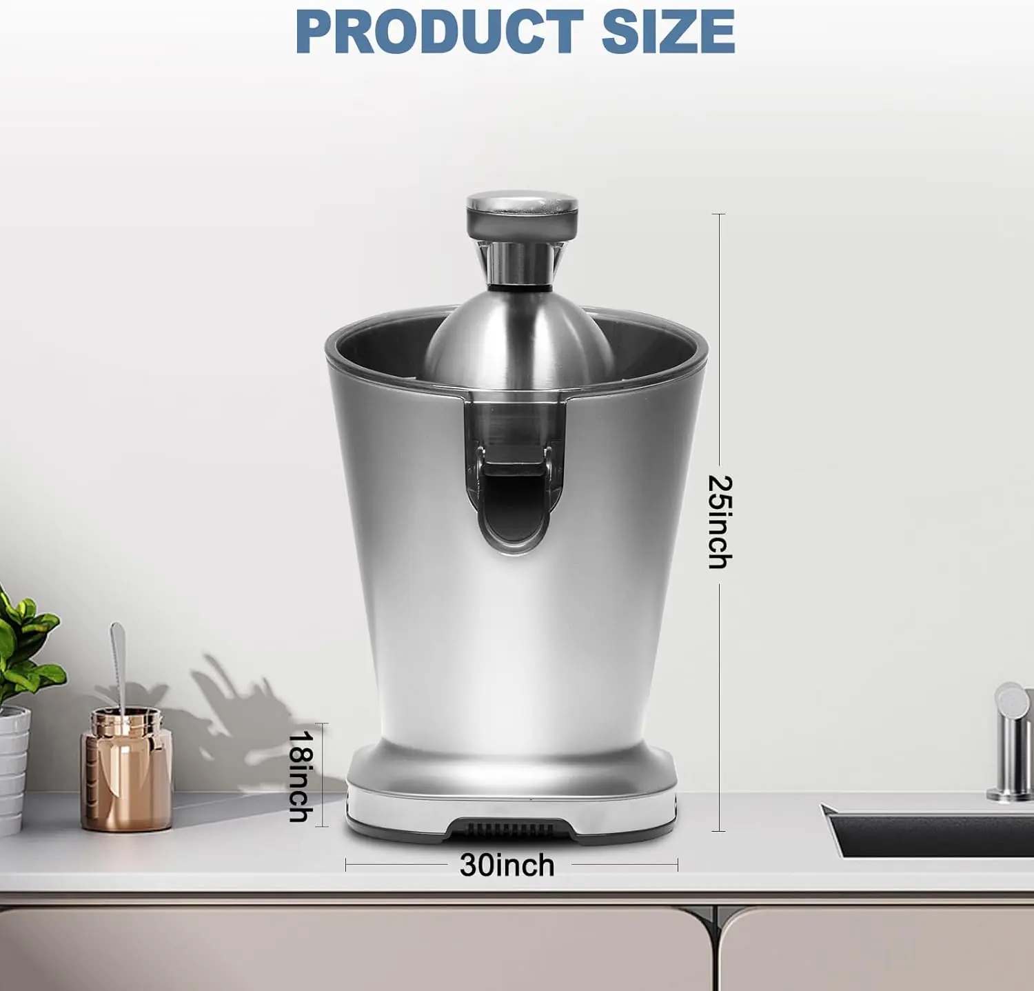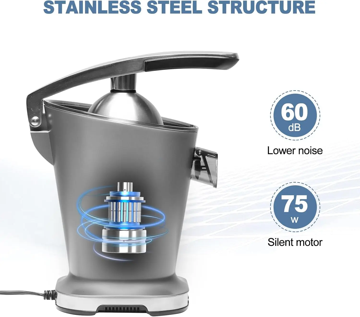 Designed with a high-performance 75W motor, this electric citrus juicer delivers strong and consistent juice extraction while operating quietly. The optimized power system maximizes juice output from oranges, lemons, limes, and other citrus fruits without excessive noise.