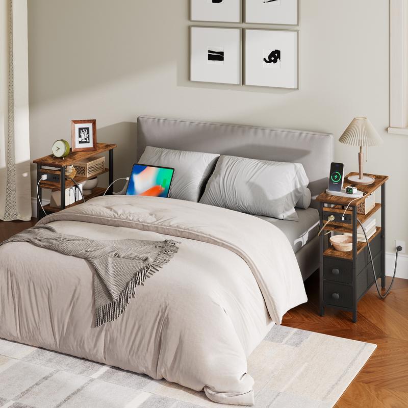 ·One-Stop Charging Solution: The nightstand is equipped with 1 AC outlet and 2 USB ports to keep your phone, tablet, and laptop charged up. The 4.9-foot/1.5-m power cord offers ample flexibility, effortlessly addressing the issue of too-short cords