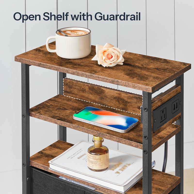·Versatile Storage: This end table offers a range of storage solutions to fulfill your diverse storage needs, featuring 3 open shelves perfect for storing photo frames, books and ornaments, complemented by 2 fabric drawers that hold magazines and sundries