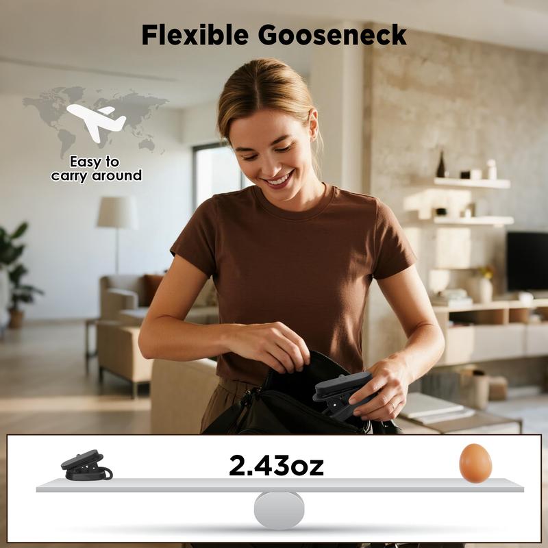 Portable Clip-On Design": Can be clipped to books, bed frames, desks, etc., compact and lightweight, perfect for dorms, bedrooms, and travel;