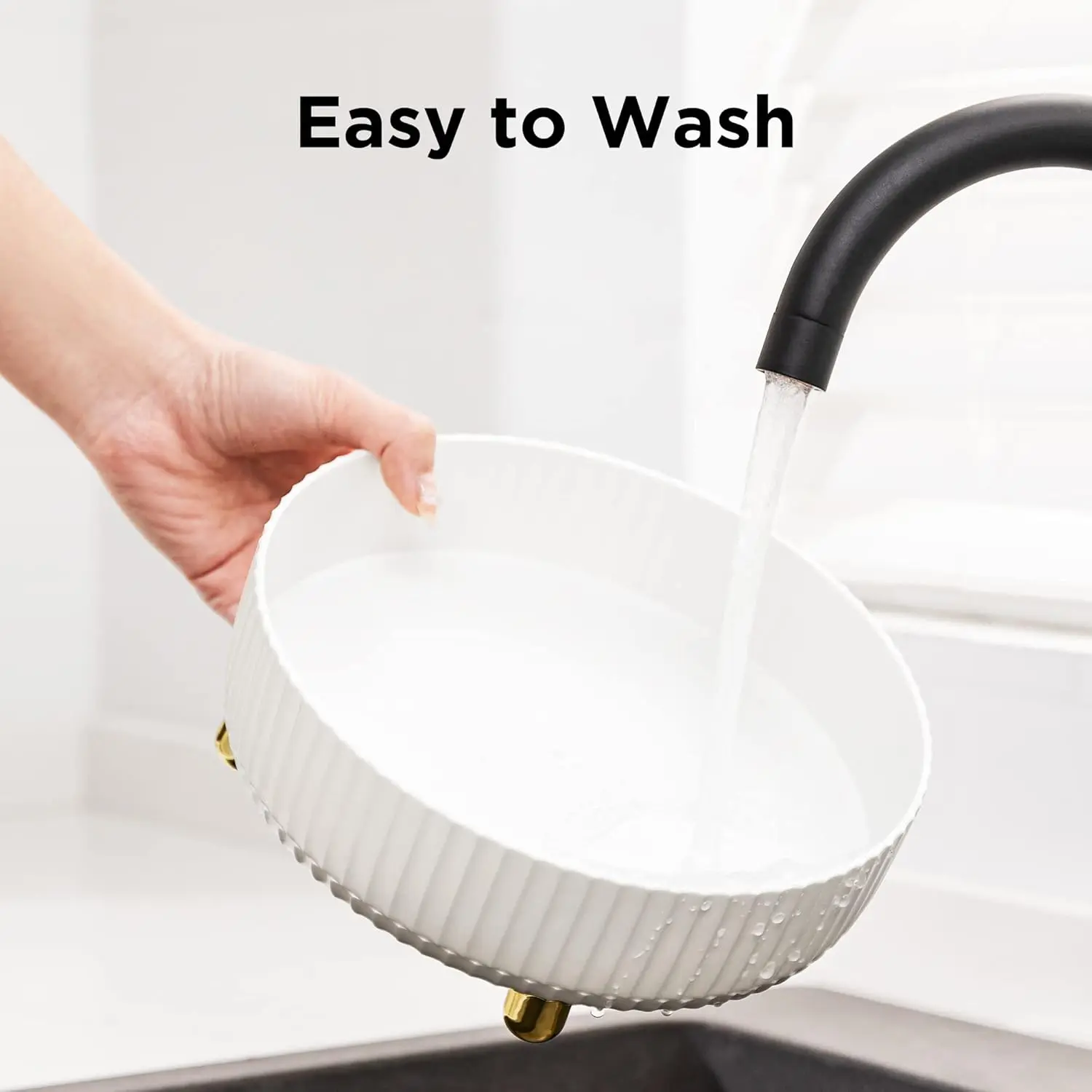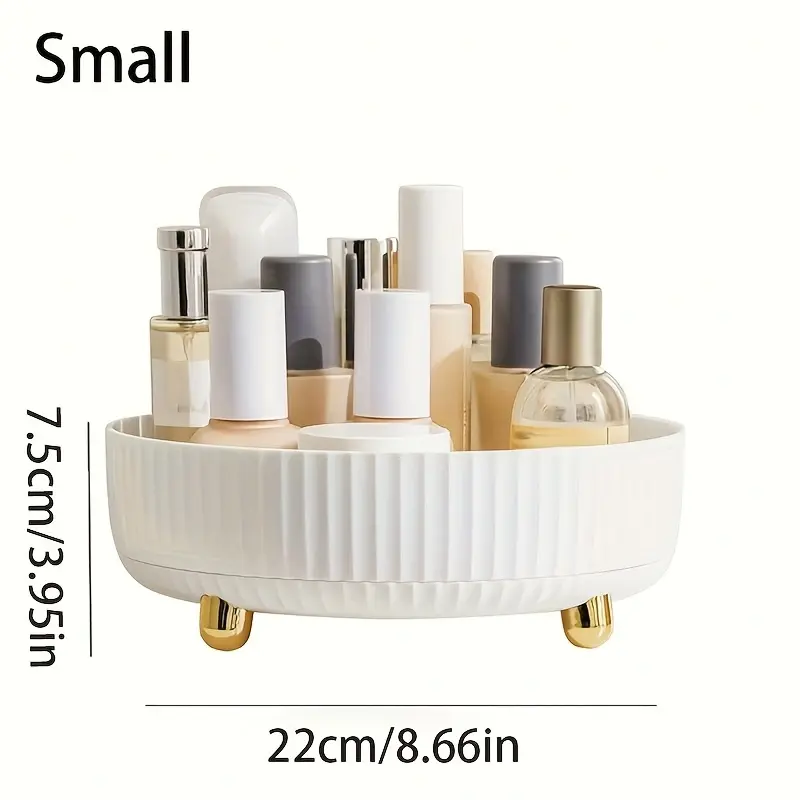 ·Size:Measures 8.66*8.66*2.95 inches (22*22*7.5 cm),easily accommodates 8-12 beauty products.Its compact size is designed for bathroom counter organizer,kitchen or dressers,saving valuable space