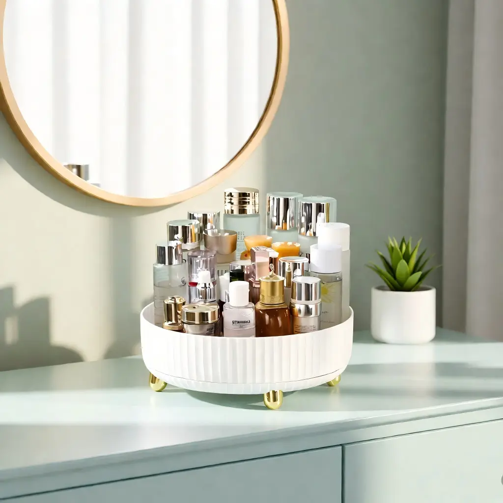·EASY TO ACCESS: Turntable organizer makes all cosmetics clearly visible, just gently rotate it, you can easily get the cosmetics and keep everything in order. Modern lazy susan, it can make your morning routine easier and more efficient.