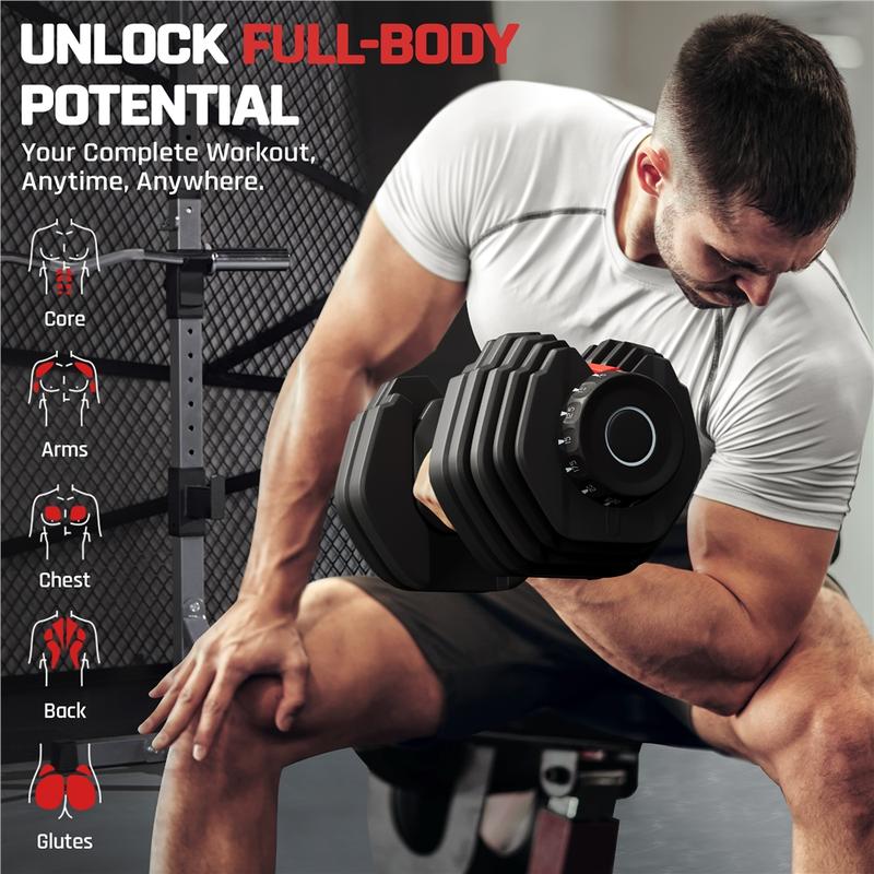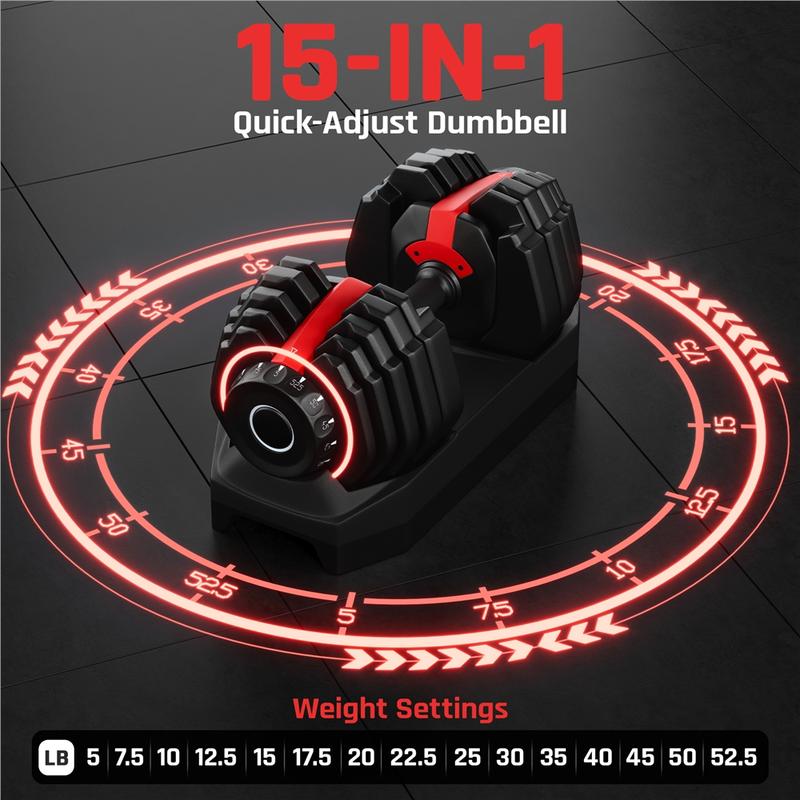 Upgrade your home gym with this versatile 15-in-1 Adjustable Dumbbell. Featuring a professional internal linkage system, it allows you to rotate just one dial to instantly sync both ends—switching from 5 to 52.5 lb in a second. No more bulky racks or awkward weight jumps; the precision increments support steady, measured progress for both beginners and pros. Built for safety and durability, the reinforced double-lock system ensures plates stay firmly seated during intense rows or overhead presses. Its compact footprint fits neatly under a workout bench or in a closet, making it the ideal solution for small apartments. With a non-slip TPR grip and floor-protecting base, this fast adjust weight system brings a professional, clutter-free training experience to your living space.