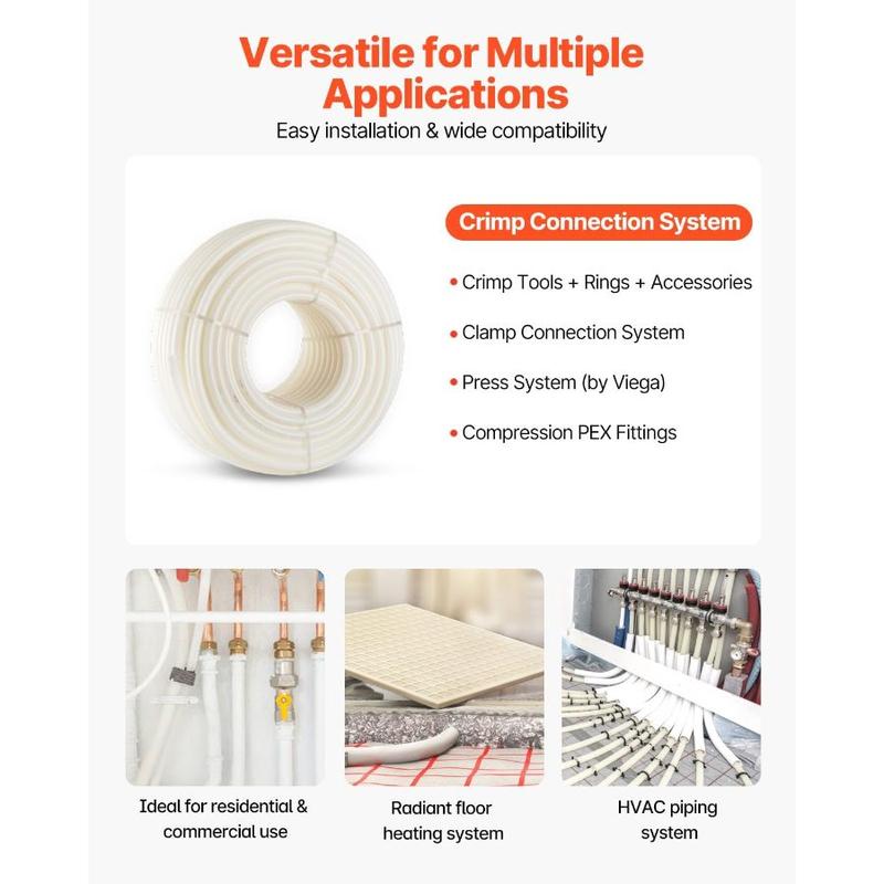 VEVOR Pex Tubing, 1 Pex Pipe 300ft Flexible Pex Hose Non Oxygen Barrier Pex Tube Coil 80 - 160psi Pex Water Line Blue Pex Piping for Hot Cold Water Plumbing Open Loop Radiant Floor Heating SystemLooking for robust PEX tubing to solve all your plumbing projects? VEVOR’s 1-inch cold PEX provides superior durability, corrosion resistance, and flexibility to handle all demanding environments. Comes with 1 cutter and 5 clamps for fast assembly during all your home and commercial improvement